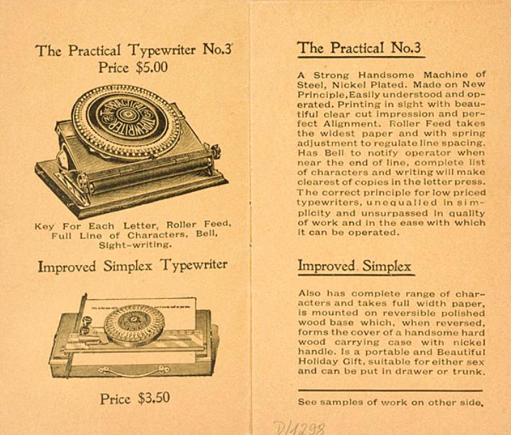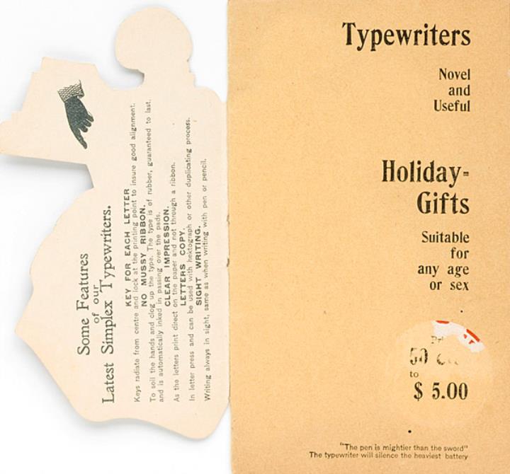 Simplex Typewriters Novel and Useful Holiday Gifts
