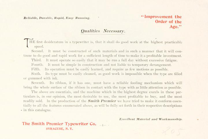 Next to literature on the history of technology, of the typewriter and the office, the Archive holds patent letters, textbooks and instruction manuals as well as historical postcards, letters, photographs and various kinds of advertising (leaflets and brochures, advertising stamps, newspaper ads, posters and signs, promotional gifts).