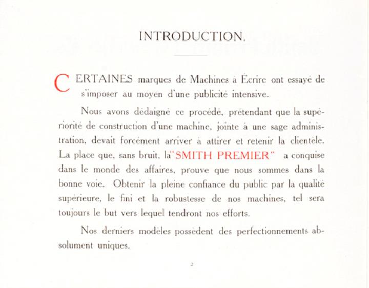 Prospekt für Schreibmaschine Smith Premier
