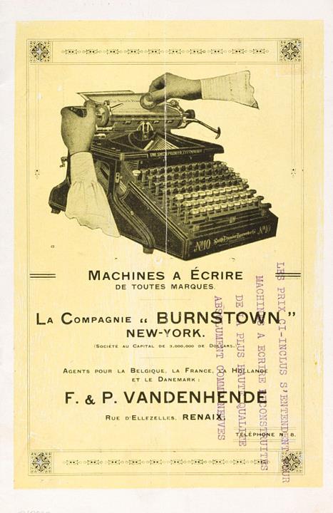 Next to literature on the history of technology, of the typewriter and the office, the Archive holds patent letters, textbooks and instruction manuals as well as historical postcards, letters, photographs and various kinds of advertising (leaflets and brochures, advertising stamps, newspaper ads, posters and signs, promotional gifts).