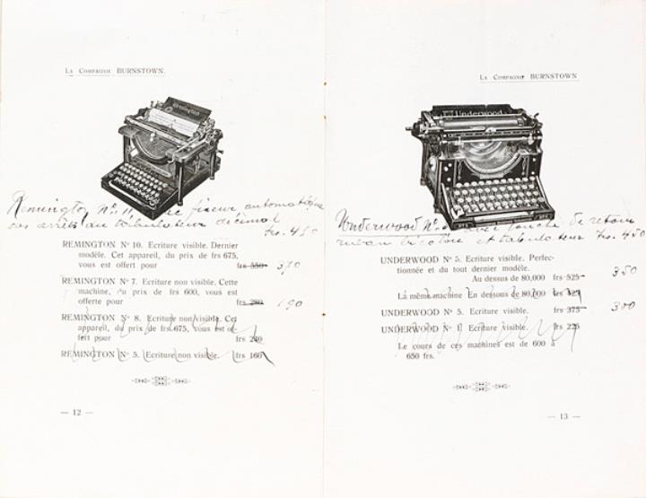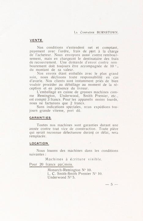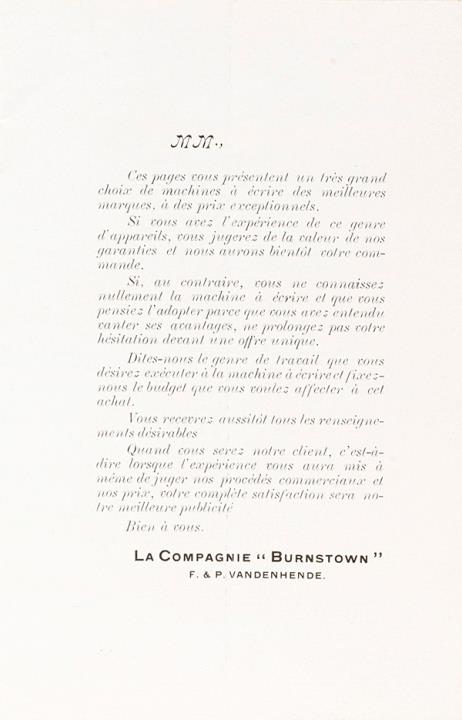 Prospekt der Compagnie Burnstown/New York für Schreibmaschine verschiedener Hersteller (darunter Smith Premier, Remington, Underwood)