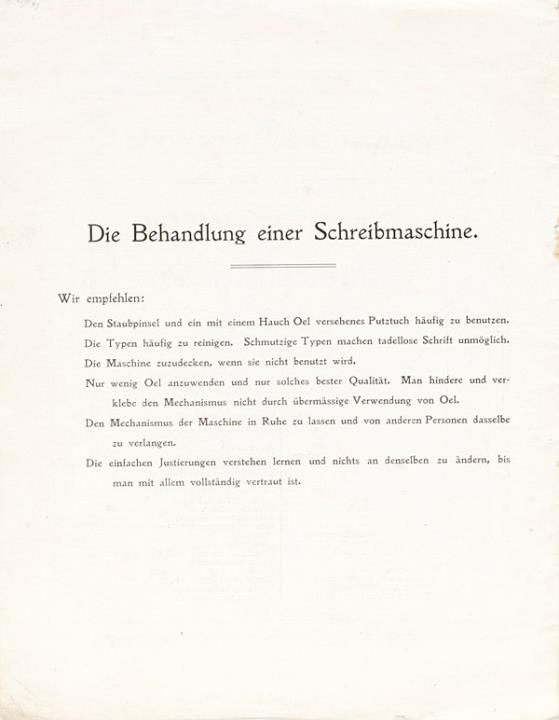 Next to literature on the history of technology, of the typewriter and the office, the Archive holds patent letters, textbooks and instruction manuals as well as historical postcards, letters, photographs and various kinds of advertising (leaflets and brochures, advertising stamps, newspaper ads, posters and signs, promotional gifts).