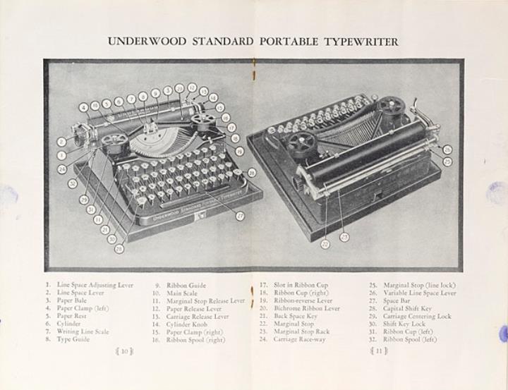 Bedienungsanleitung für tragbare Schreibmaschine Underwood Nr. P10-7-29-75M