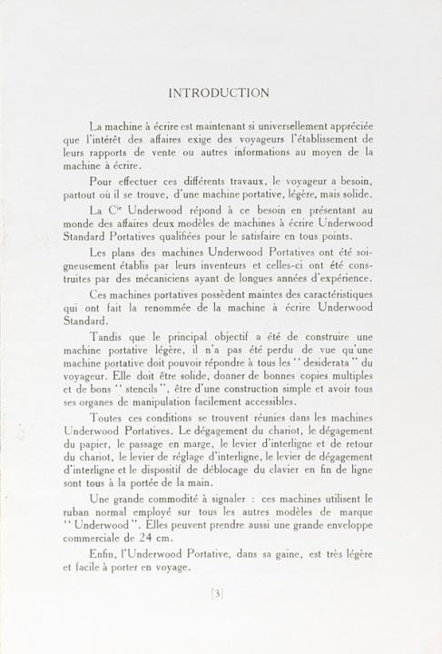 Instructions pour l'Emploi des Machines Portatives Underwood