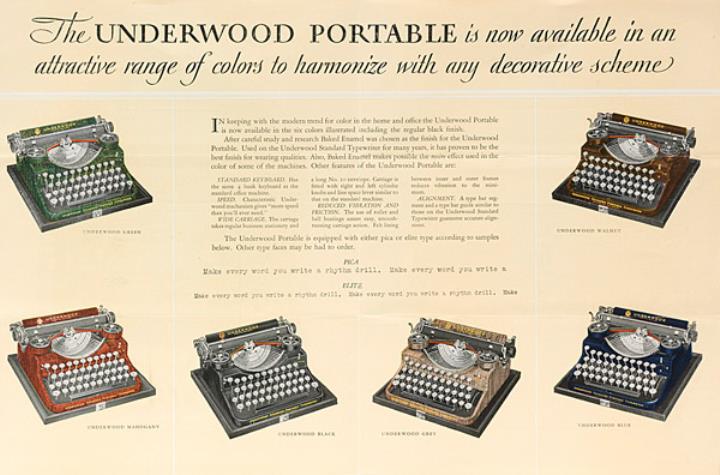 Underwood, Tragbare Schreibmaschine, Typenhebel