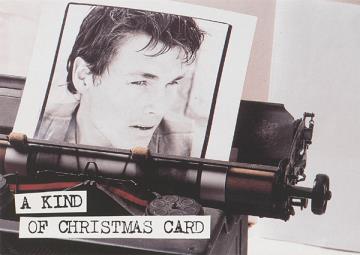 Werbepostkarte; Fotografie, polychrom Rückseite: Schreibmaschine mit eingespanntem Papierbogen (Foto des Sängers Morten Harket) Vorderseite mit Werbetext