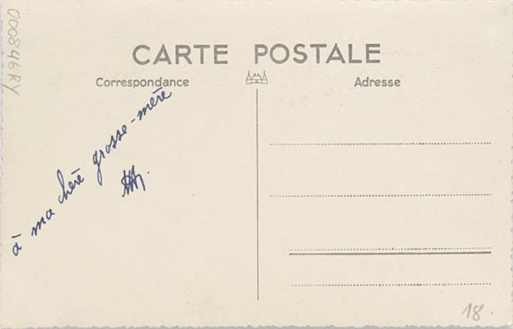 Illustrierte Postkarte; Fotografie, monochrom Rückseite: Frau mit Schreibmaschine in einem Büro Vorderseite beschrieben