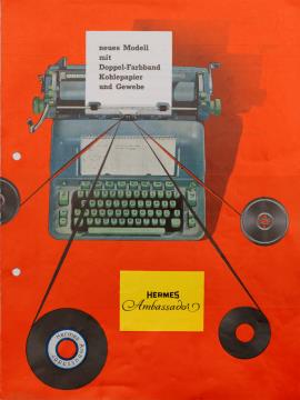Prospekt für Schreibmaschine Hermes Ambassador ...die Büroschreibmaschine mit dem vollständigen Ausrüstungsgrad Nr. 735 A All.