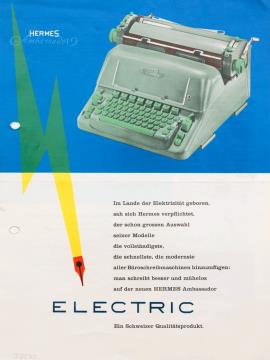 Prospekt für elektrische Schreibmaschine Hermes Ambassador Nr. 7001 B All.M.L.