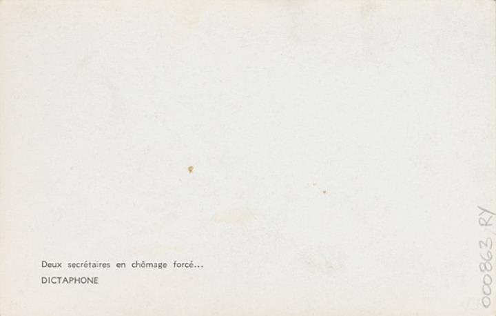 Illustrierte Postkarte; Fotografie, monochrom Rückseite: zwei Sekretärinnen mit Schreibmaschine in einem Büro Vorderseite mit Beschreibungstext