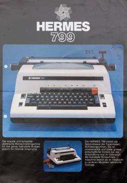 Prospekt für elektrische Schreibmaschine Hermes 799 Nr. 7902 (allemand) Datum handschriftlich vermerkt