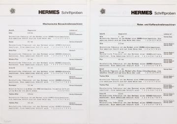 3 Schriftprobenblätter für Hermes mechanische Büroschreibmaschinen, Hermes/beaucourt Reise- und Kofferschreibmaschinen, Hermes elektrische Schreibmaschinen