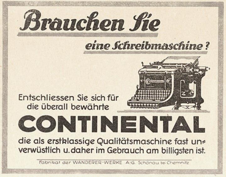 Werbeanzeige für Schreibmaschine Continental monochrom