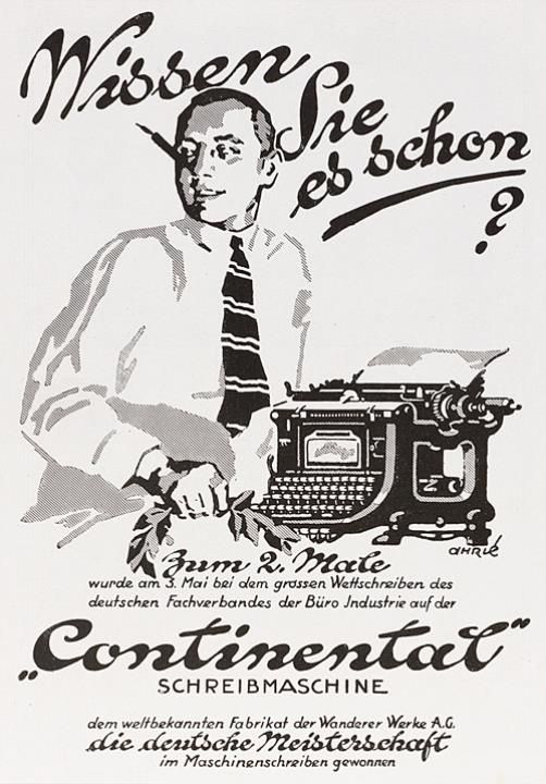 Werbeanzeige für Schreibmaschine Continental monochrom Grafik: Ahrlé