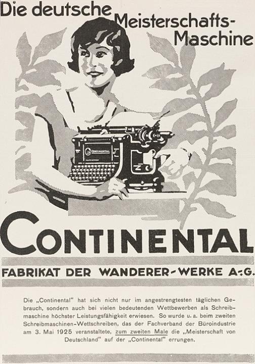 Werbeanzeige für Schreibmaschine Continental monochrom