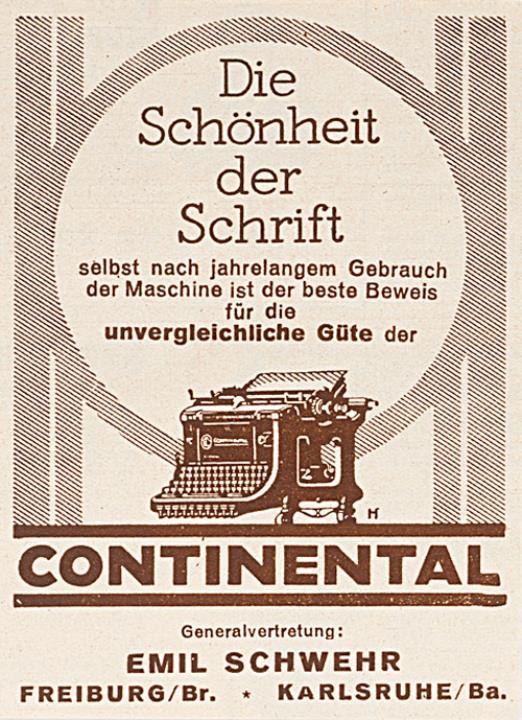 Werbeanzeige für Schreibmaschine Continental monochrom