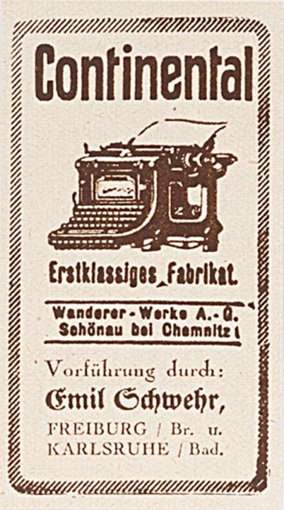 Werbeanzeige für Schreibmaschine Continental monochrom