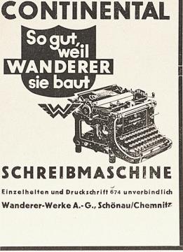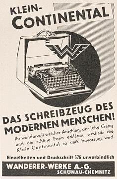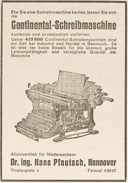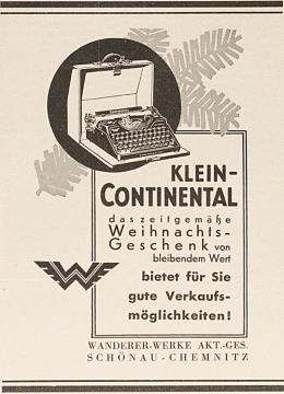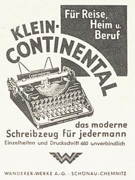 Werbeanzeige für Schreibmaschine Continental monochrom
