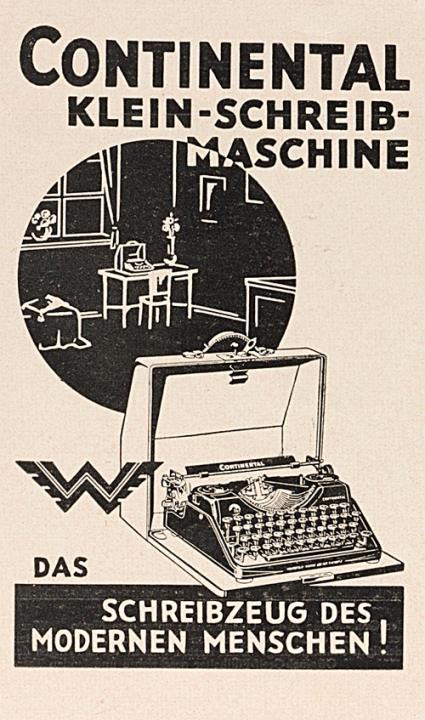 Werbeanzeige für Schreibmaschine Continental monochrom