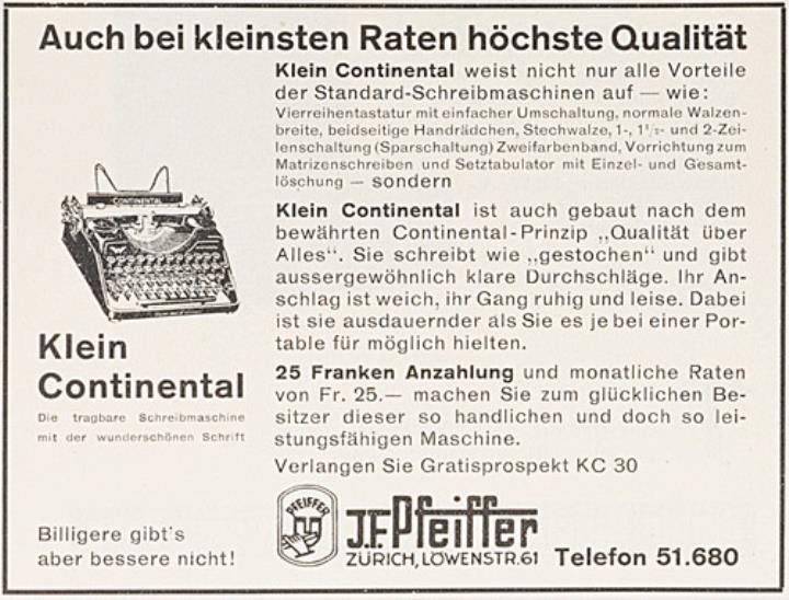 Werbeanzeige für Schreibmaschine Continental monochrom
