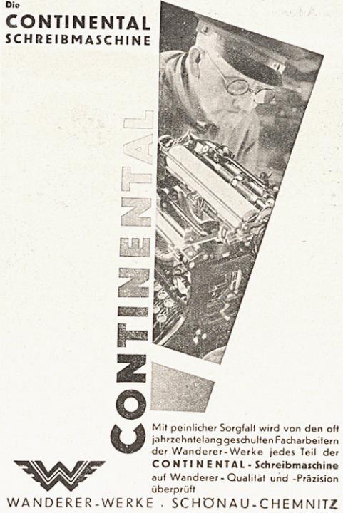 Werbeanzeige für Schreibmaschine Continental monochrom