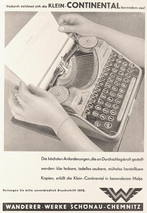 Werbeanzeige für Schreibmaschine Continental monochrom