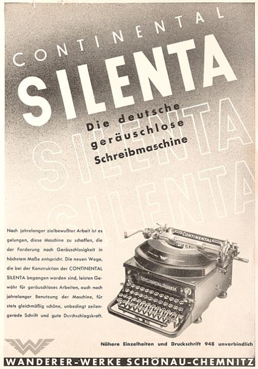 Werbeanzeige für Schreibmaschine Continental monochrom