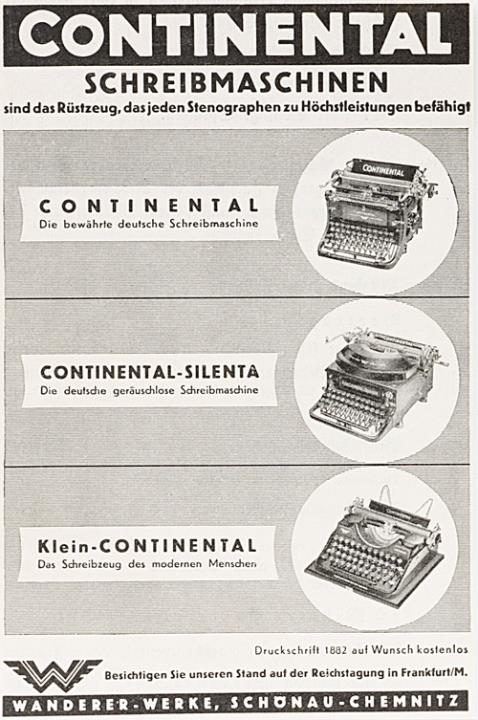 Werbeanzeige für Schreibmaschine Continental monochrom