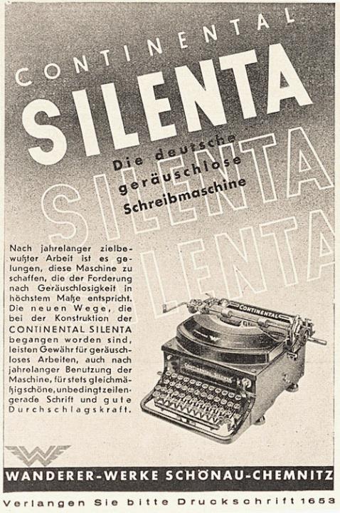 Werbeanzeige für Schreibmaschine Continental monochrom