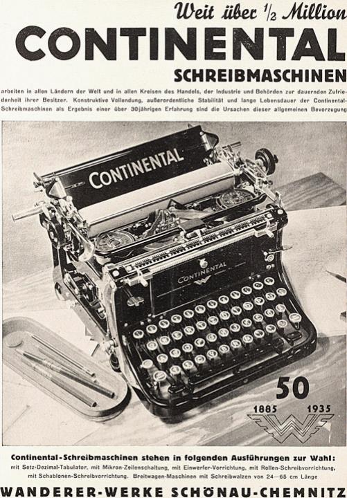 Werbeanzeige für Schreibmaschine Continental monochrom