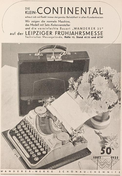 Werbeanzeige für Schreibmaschine Continental monochrom
