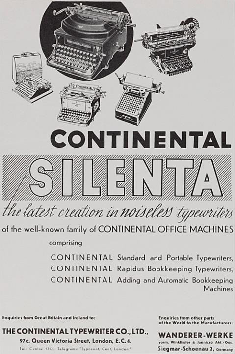 Werbeanzeige für Schreibmaschine Continental monochrom