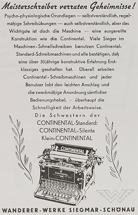 Werbeanzeige für Schreibmaschine Continental monochrom