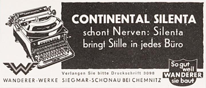 Werbeanzeige für Schreibmaschine Continental monochrom