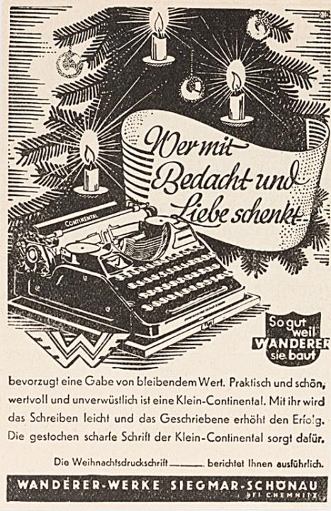 Werbeanzeige für Schreibmaschine Continental monochrom
