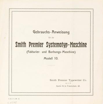 Gebrauchs-Anweisung für die Smith Premier Systemotyp-Maschine (Fakturier- und Buchungs-Maschine) Modell No. 10