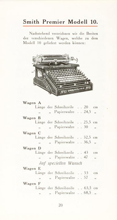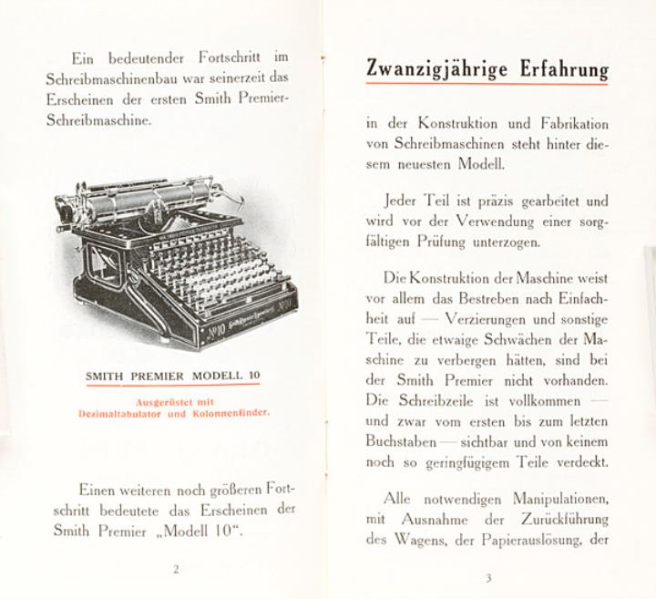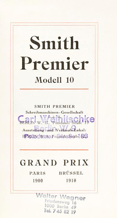 Prospekt mit Filialenverzeichnis für Schreibmaschine Smith Premier 10