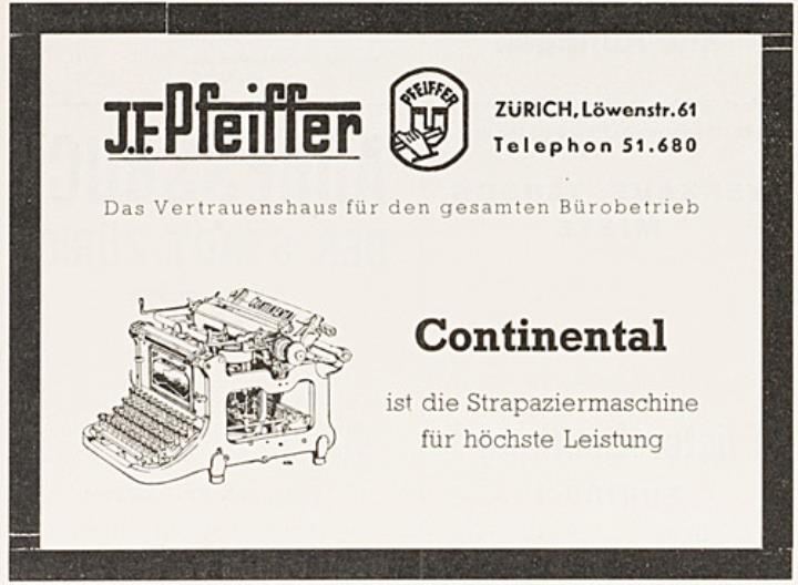 Werbeanzeige für Schreibmaschine Continental monochrom