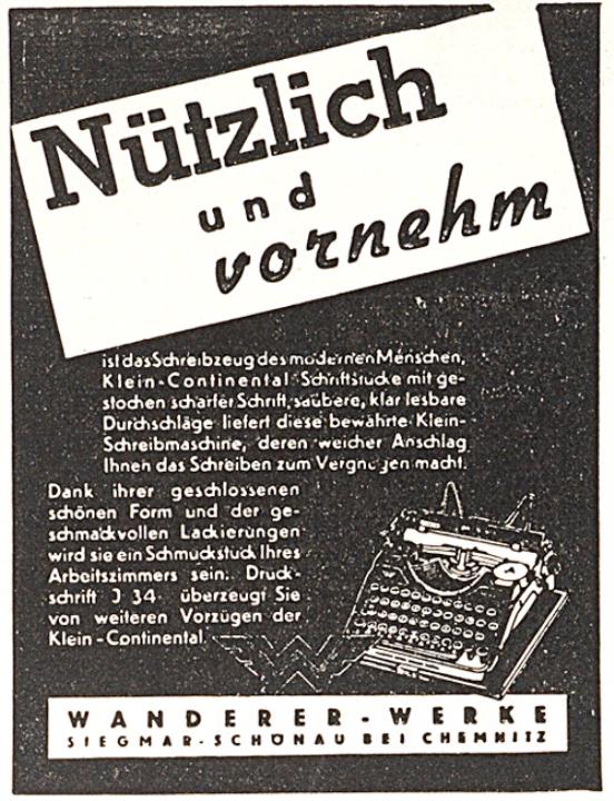 Werbeanzeige für Schreibmaschine Continental monochrom