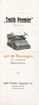 Faltprospekt für Schreibmaschine Smith Premier 10 Nr. 2.H.99.5M.10.