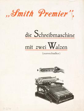 Auf Karton aufgezogenes Werbeblatt für Schreibmaschine Smith Premier 10 Nr. 429