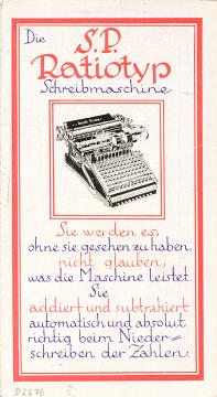 Next to literature on the history of technology, of the typewriter and the office, the Archive holds patent letters, textbooks and instruction manuals as well as historical postcards, letters, photographs and various kinds of advertising (leaflets and brochures, advertising stamps, newspaper ads, posters and signs, promotional gifts).