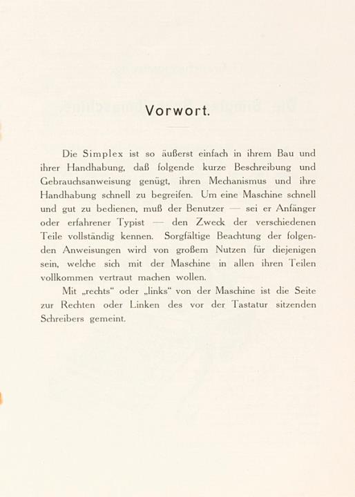 Gebrauchsanweisung für die Simplex-Schreibmaschine
