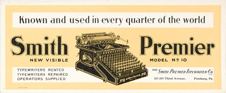 Auf Karton aufgezogenes Werbeblatt für Schreibmaschine Smith Premier 10 Nr. 429