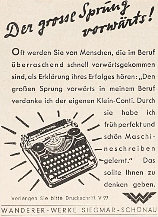 Werbeanzeige für Schreibmaschine Continental monochrom