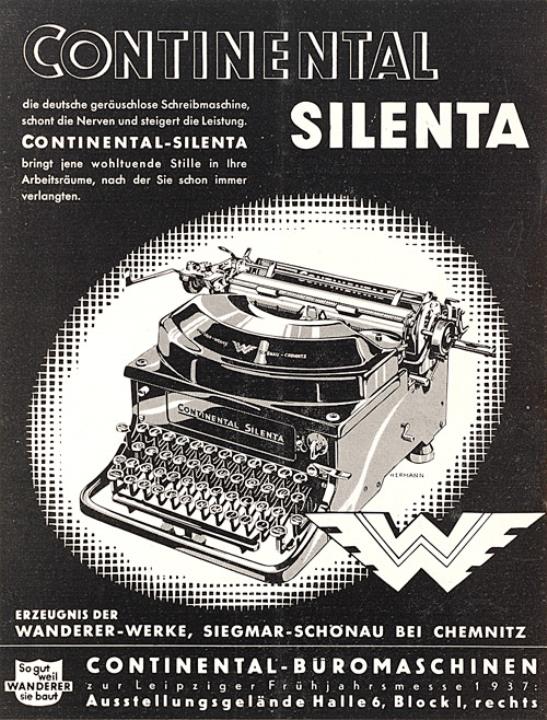 Werbeanzeige für Schreibmaschine Continental monochrom