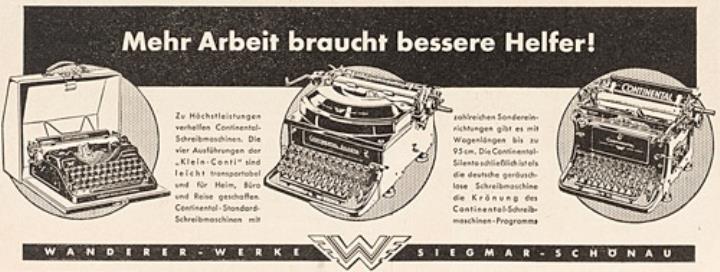 Werbeanzeige für Schreibmaschine Continental monochrom