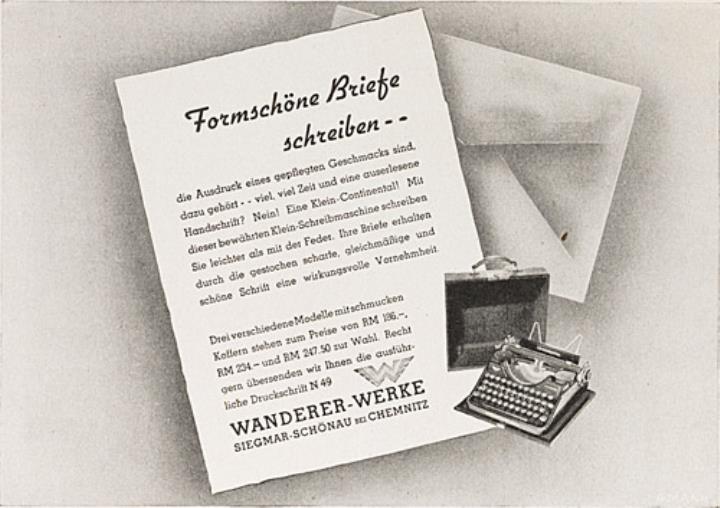 Werbeanzeige für Schreibmaschine Continental monochrom