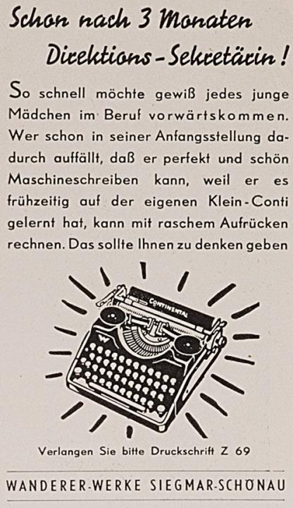 Werbeanzeige für Schreibmaschine Continental monochrom