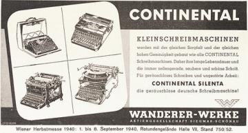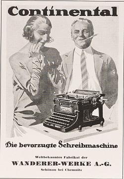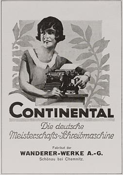 Werbeanzeige für Schreibmaschine Continental monochrom